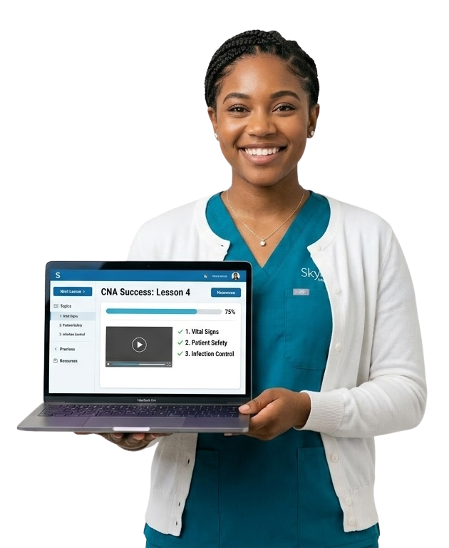 Skyana blends years of healthcare expertise with a passion for student success, providing the essential tools, modern resources, and dedicated mentorship you need to pass your CNA state exam.